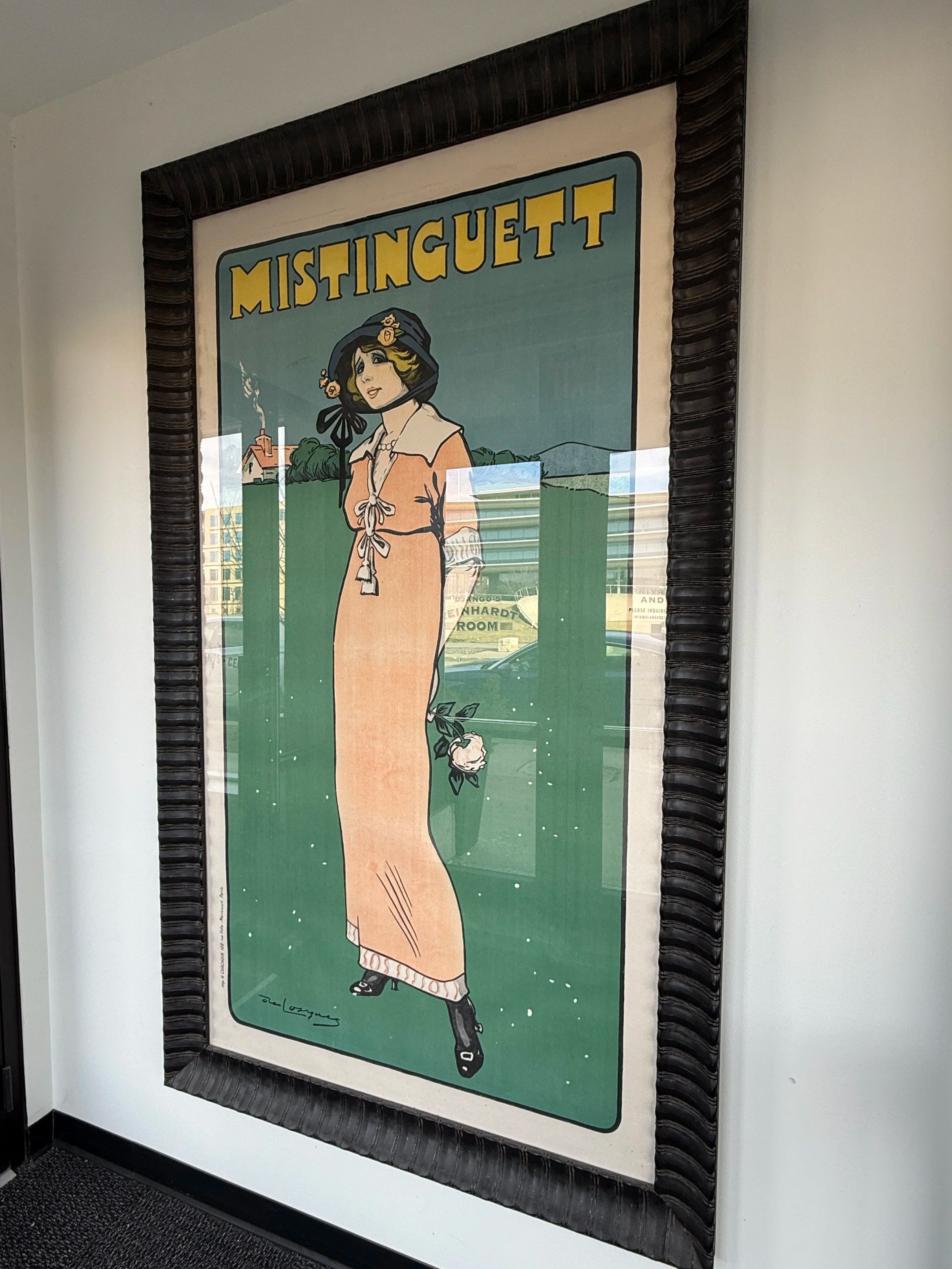Framed “Mistinguett” Print. Printed in Paris by the firm H Cachoin. Artist: Daniel de Losques.