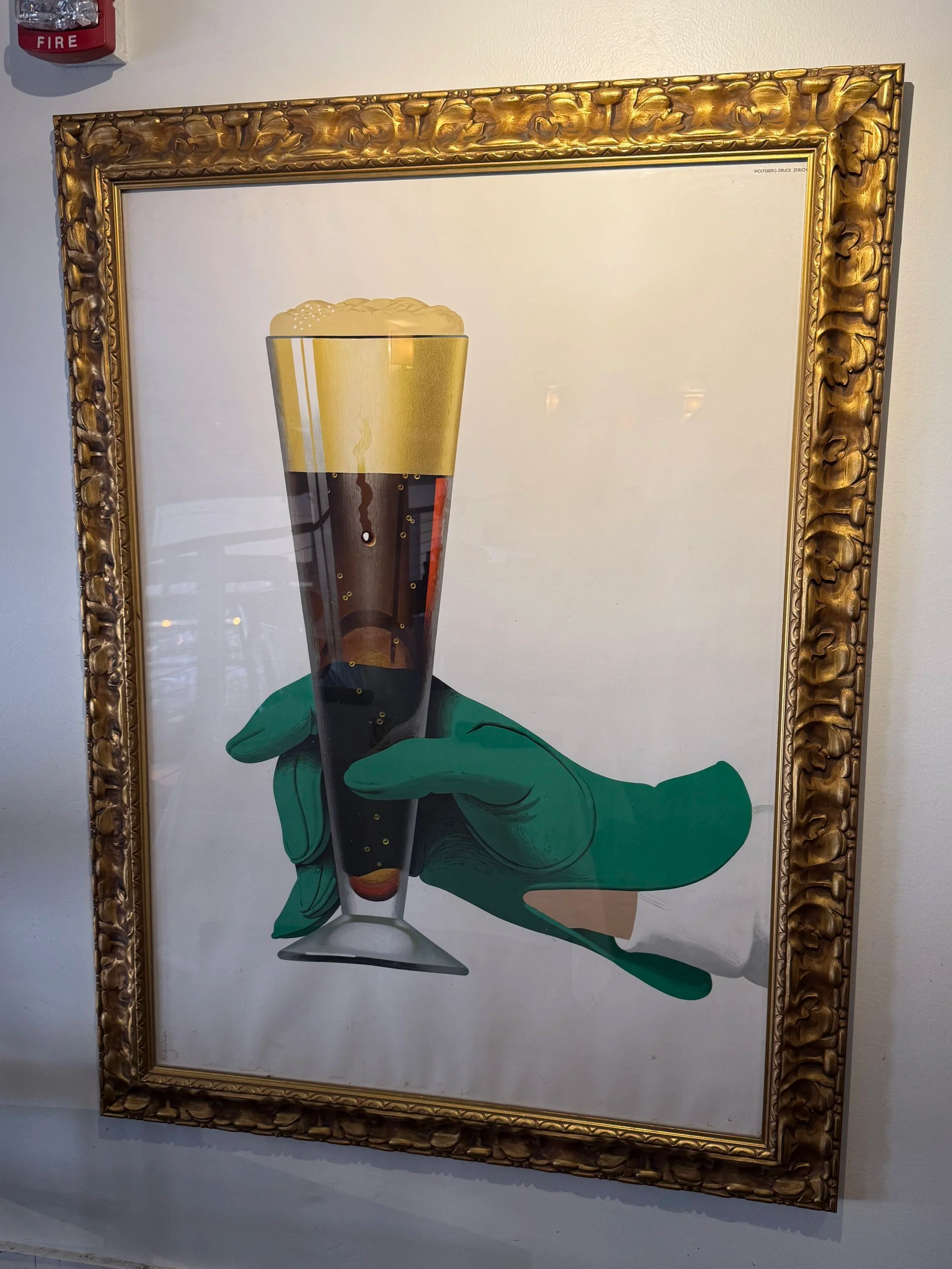 Framed “Beer with Green Glove” print. Peter Birkhauser, 1950s.