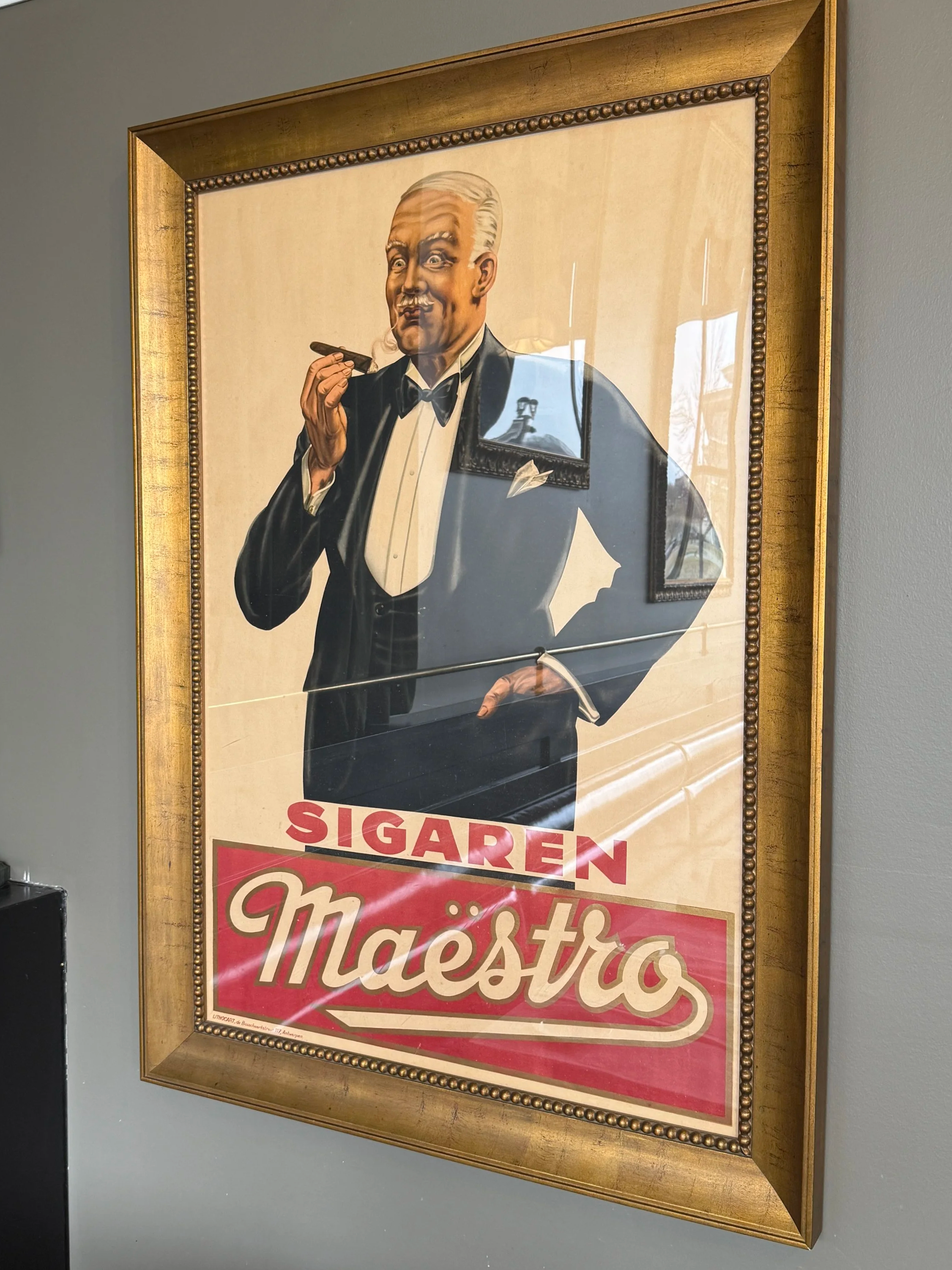 Framed “Sigaren Maestro” print. Artist unknown.