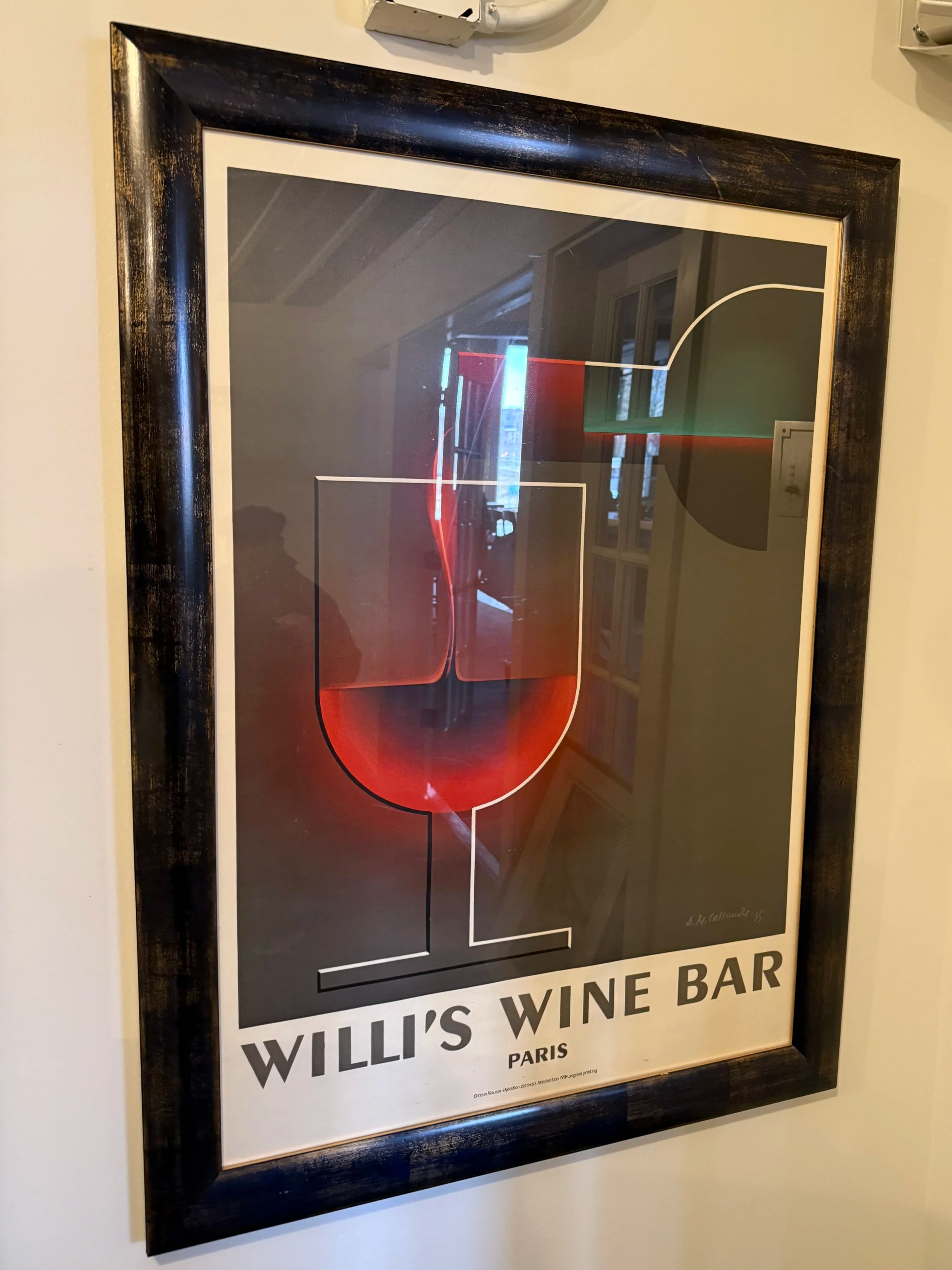 Framed “Willis’ Wine Bar” print.