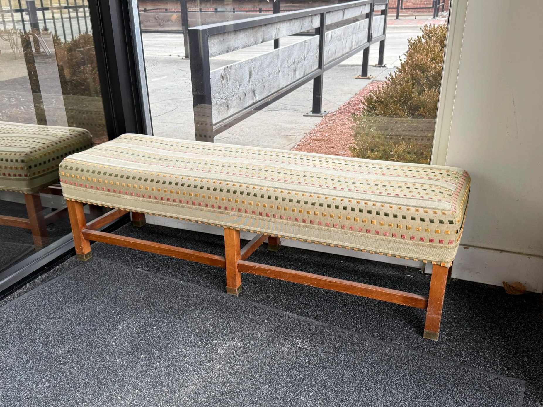 Upholstered cushioned bench.